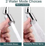 360° serbestçe dönebilen tasarım: Musluk uzatması, 360° dönebilen bilyalı başlık ayarı, 80° açı ayarı. Su akışı, kir birikmeden kolay temizlik için lavabonun tüm köşelerine ulaşır. Tencereleri ve tavaları kolayca yıkayın.