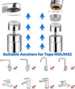Musluk başlığı, 360 derece musluk başlığı, musluk regülatörü 360° döndürülebilir, musluk su tasarrufu, krom M22- M24 pirinç musluk havalandırıcı, mutfak/banyo musluğu için
