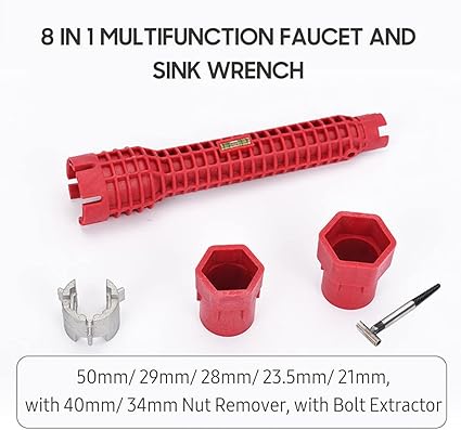Musluk ve Evye Anahtarı 8’i 1 Arada Somun Çıkarıcı ve Cıvata Çıkarıcılı Çok Fonksiyonlu Anahtar Aleti Çift Kafalı Tesisat Anahtarı Mutfak Lavaboları için Hızlı Kurulum Su Havzaları Musluklar