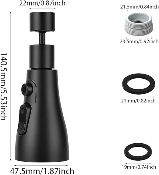 Musluk, yedek duş başlığı, 360° döndürülebilir, 3 mod, döndürülebilir musluk, başlık, mutfak armatürü, adaptörlü, FM22 mutfak armatürü, püskürtme başlığı (siyah)Musluk, yedek duş başlığı, 360° döndürülebilir, 3 mod, döndürülebilir musluk, başlık, mutfak armatürü, adaptörlü, FM22 mutfak armatürü, püskürtme başlığı (siyah)