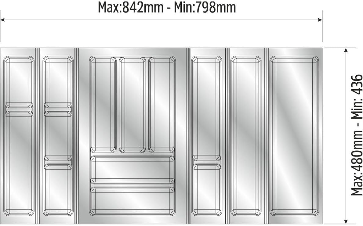 Mutfak Çekmece Içi Düzenleyici, Kaşıklık 84Cm X 48Cm Yanlar Ve Boydan 4Cm Kesilebilir, Antrasit