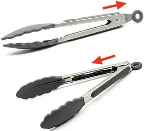 Mutfak Maşası Yemek Izgara Salata Barbekü Kızartma Maşası, Isıya Dayanıklı Paslanmaz Çelik Saplı Silikon Yemek Maşası 3 Renk Seçeneği (Gri-Krem-Bej) (GRİ)