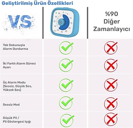 Dikkat eksikliği ve hiperaktivite bozukluğu (DEHB) yaşayanlar için NPO TMR60R Zaman Yönetim ve Öğrenci Motivasyon Saati ideal bir çözümdür. Bu görselliği artırılmış sessiz analog geri sayım saati, zaman yönetimini kolaylaştırır ve konsantrasyon eksikliğini en aza indirir. Belirtilerle başa çıkmak için kullanabilirsiniz.