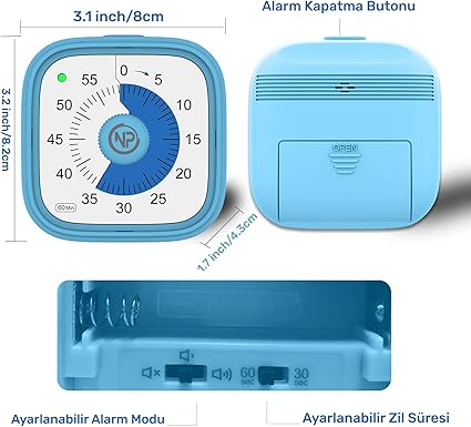 NPO TMR60R Zaman Yönetim ve Öğrenci Motivasyon Saati, dikkat eksikliği ve konsantrasyon bozukluğu olan öğrencilere yönelik görselliği artırılmış analog geri sayım saati olarak önerilmektedir. Sessiz çalışmasıyla dikkatinizi dağıtmadan kullanabilirsiniz. Alarm, görsel takip ve saat ayarlama özellikleriyle zamanı yönetmenizi sağlar.