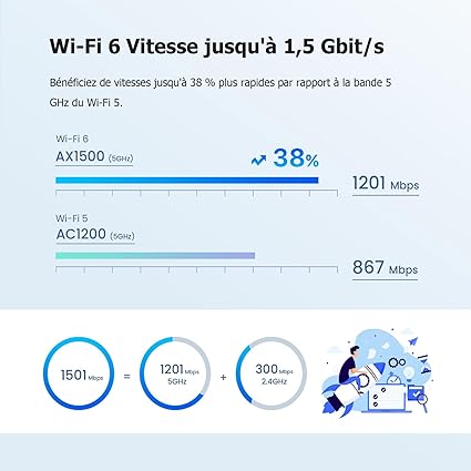 【WiFi 6 AX1500 Mesh sistemi】Wi-Fi 6 teknolojisi ile donatılmıştır, Tenda Nova Mesh WiFi MX3’ün aynı anda çift bant hızı 1501 Mbps’ye kadar ulaşabilir (5 GHz: 1201 Mbps, 2,4 GHz: 300 Mbit/sn) ve hızlı ve geniş WLAN 6 kapsama alanı sağlar.