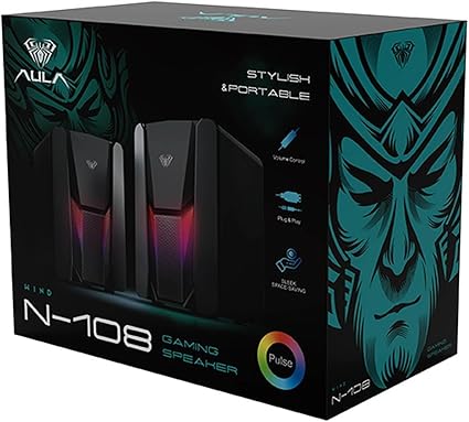 Aula N-108 1+1 USB / Aux Stereo 2.0 RGB Masaüstü Gaming Oyuncu Hoparlör Speaker Ses Sistemi, ses çıkışı bulunmayan masaüstü bilgisayarınızın Jak bağlantısı ile kaliteli ve temiz bir ses çıkışına sahip olmasını sağlar. İçerisinde bulunan güçlü sürücüler müzik dinlerken veya oyun oynarken basları ve tizleri en net şekilde size aktarır.