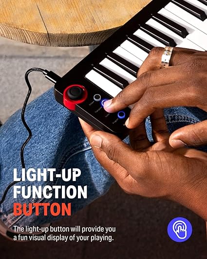 Teknik Özellikler Klavye: 25 velocity-sensitive mini-tuş MIDI Interface/Power Supply: USB-C Fonksiyonlar: Oktav, transpose, sustain, program kontrol butonları ile programlanabilir hafıza. Uyumluluk: PC, MAC