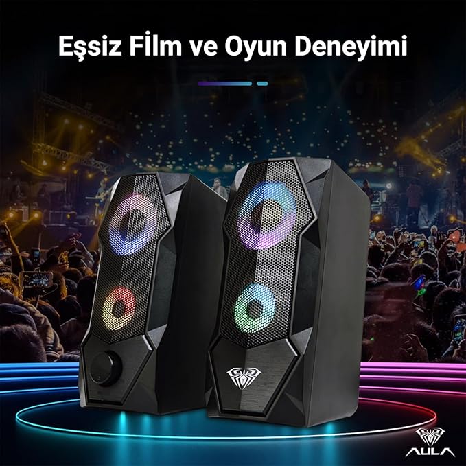 Güçlü Ses Performansı: 3W*2 hoparlör gücü ve Stereo 2.0 ses kanalı ile net ve dengeli ses deneyimi sunuyor. 150Hz – 20KHz frekans aralığı sayesinde hem oyunlarda çevresel sesleri net bir şekilde duyabilir hem de müzikte detaylı bir dinleme deneyimi yaşayabilirsiniz.