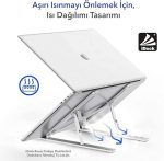 Laptopunuz için Soğutma Sağlar: Altı açık dizüstü bilgisayar stand tasarımı ile, ısının hava ile temasını sağlar ve dizüstü bilgisayarınızın hava akışını artırır. Katlanabilir tasarıma sahiptir, kolayca katlanabilir ve dizüstü bilgisayar çantanıza veya herhangi bir sırt çantasına yerleştirilebilir.