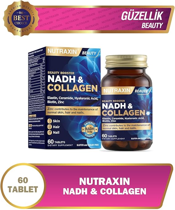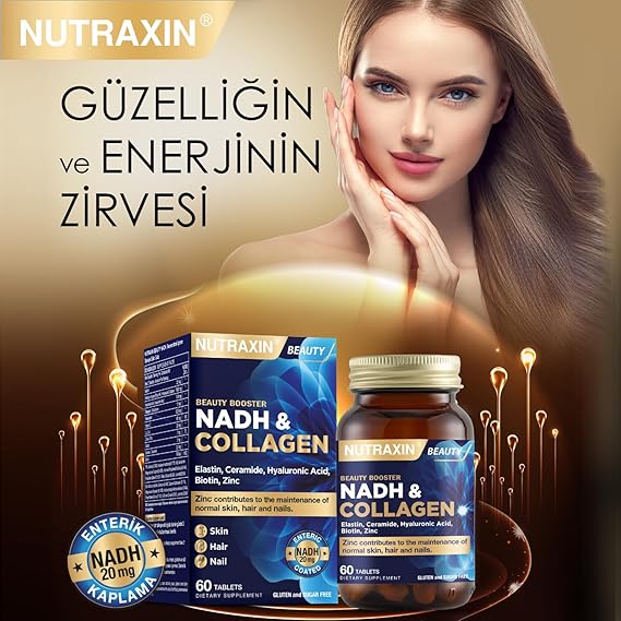 NADH & Collagen | Tip I-III Kolajen + NADH + Hyaluronik Asit | Cilt, Saç, Tırnak ve Enerji Desteği | 60 Tablet