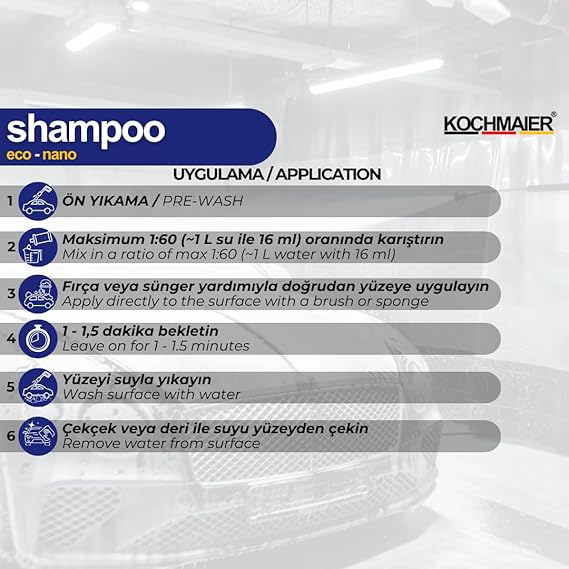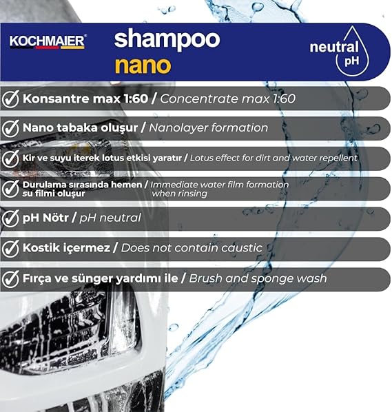 nano Oto Araç Cilalı Kostiksiz Şampuan Temizleyici Kopüklü Snow Foam Yıkama Konsantre 1:60 (5 Litre/Kg)
