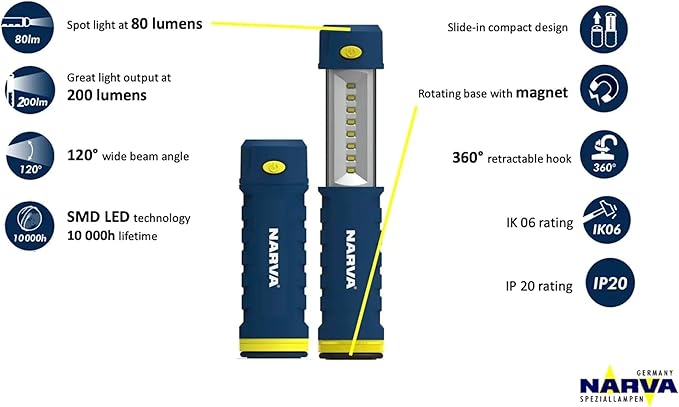 Narva El Feneri 24 Saat Çalışma Mıknatıslı Suya Toza Dayanıklı (3 Adet Aa Pil Ile Çalışır)