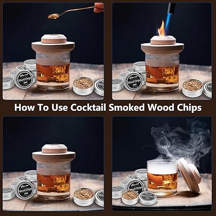 【Geniş kullanım alanı】Kokteyl sigara setimiz her durumda kullanılabilir, ister evde, ister barda veya açık havada yemek pişirirken. Bu ahşap talaşlarını aromalı viski, burbon, kokteyller, içecekler, deniz ürünleri, domuz pastırması, sığır eti, peynir, sebze, tatlı veya ızgara yemekleri ve daha fazlası için kullanabilirsiniz, bu içtiğiniz her şeye hoş bir duman tadı katar ve size ve arkadaşlarınıza iyi bir ruh hali getirir.