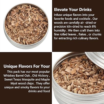 【Zarif hediye】 Ahşap yonga kutularımız dekorasyon olarak kullanılmak için yeterince zarif bir işçiliğe sahiptir ve bar rafında dikkat çekebilir. Basit ama şık tasarım ve doğal, benzersiz duman tadı arkadaşlarınızı ev barınızda heyecanlandırır! Tütsü yakıtlı odun yongalarımız, her barmen, barbekü meraklısı veya aşçıyı seveceği bir hediye olacaktır.