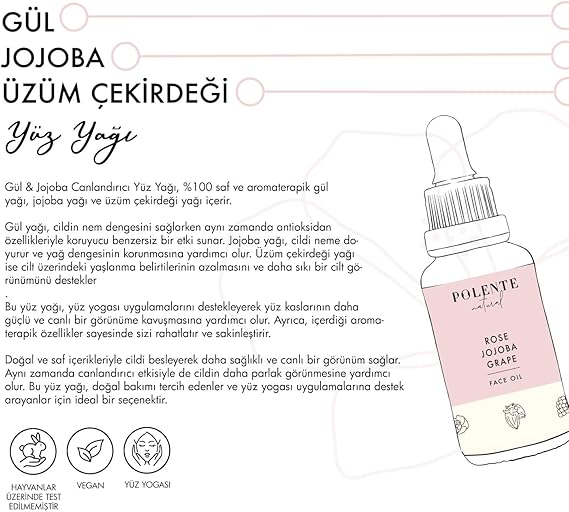 Temel İçerik: Gül Yağı, Jojoba Yağı, Üzüm Çekirdeği Yağı
