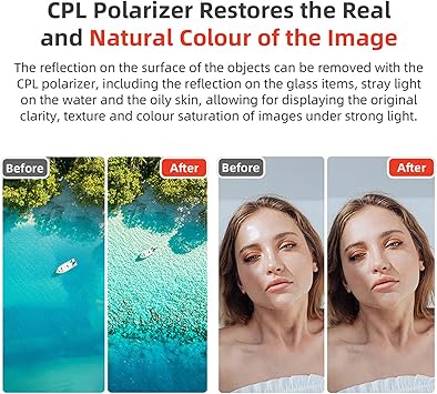 【Işık Azaltma Etkisi】 ND filtresi ışığın çarpmasını azaltır ve maruz kalma süresini uzatır. CPL polarizörü görüntünün gerçek ve doğal rengini geri yükler. Sinematik bir görünüm elde etmek için kamera parametrelerini ayarlamak için dinamik dış mekan etkinlikleri sırasında kameraya karşılık gelen ışık değerini engeller.