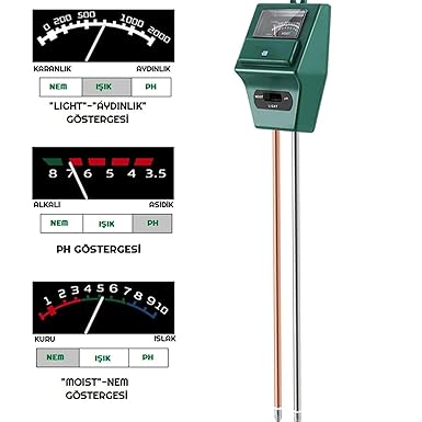 ✓ 3’ü 1 arada toprak test cihazı: Toprak pH ölçer, nem ölçer ve ışık seviyesi ölçer özellikleri tek cihazda birleşti – bitkileriniz için doğru koşulları kolayca belirleyin.
