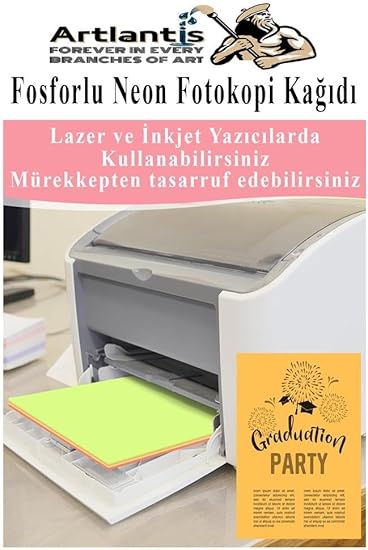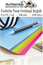 Neon Fosforlu Renkli A4 Fotokopi Kağıdı 100 lü 1 Paket 100 Adet Fosforlu 5 Renk Parlak Canlı Renkler Fotokopi Kağıdı