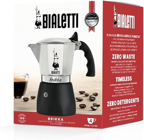 Brikka, barda olduğu gibi gerçek bir İtalyan espresso deneyimini sunan benzersiz bir kahve makinesidir. Bialetti grubunun tüm ürünleri gibi bıyıklı ikonik erkektir, hem estetik hem de yüksek performans açısından eşsiz kılar. Bialetti Brikka lezzetli bir espresso kremi elde etmenizi sağlar