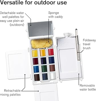 & Newton 0390639 Cotman Field Box sulu boya seti, yüksek ışık haslığına sahip canlı sulu boya, geniş renk seçenekleri, eskimeye karşı dayanıklı – 1/2 kapta 12 renk, karıştırma paleti, su tankı