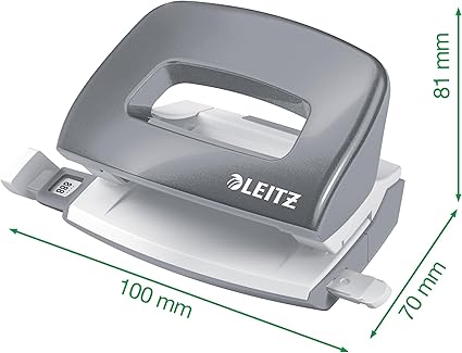 10 yaprağa kadar delgeç, farklı formatlar için net boyut bilgilerine sahip kılavuz rayı (A4, A5, A6, folyo, ABD Quart), rahat kullanım için ergonomik sap, entegre çöp kutusu
