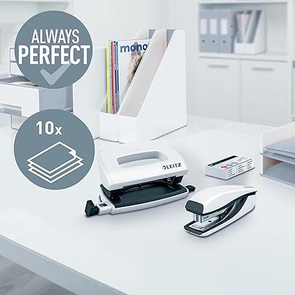 Mini zımba ve delik seti, inci beyazı, küçük, kompakt boyutu sayesinde okulda, evde veya ofiste kullanım için ideal