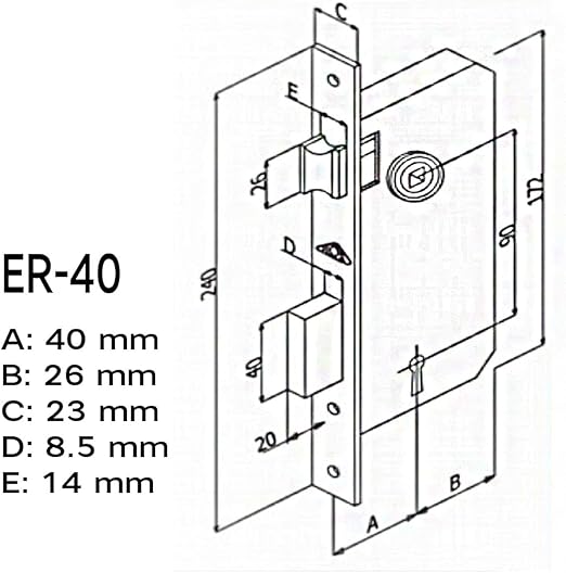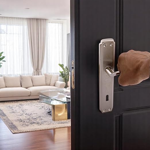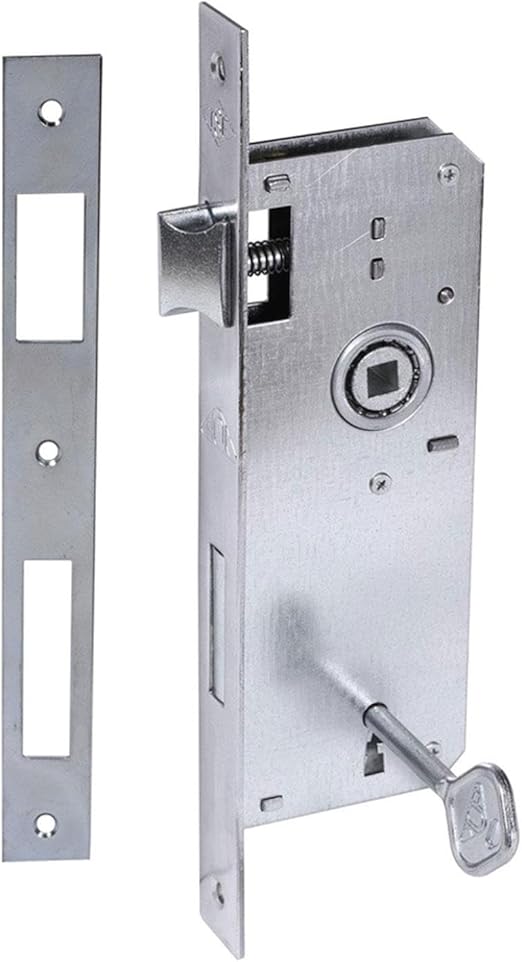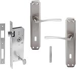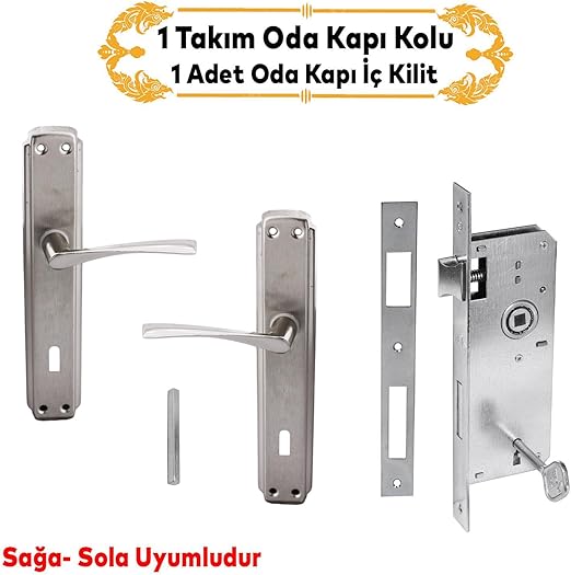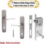 Nikel Saten Oda Kapı Kolu + Hok ER-40 Ekstra Gömme Kilit İç Kapı Oda Kilidi Rulmanlı Köşeli 40 mm Takım