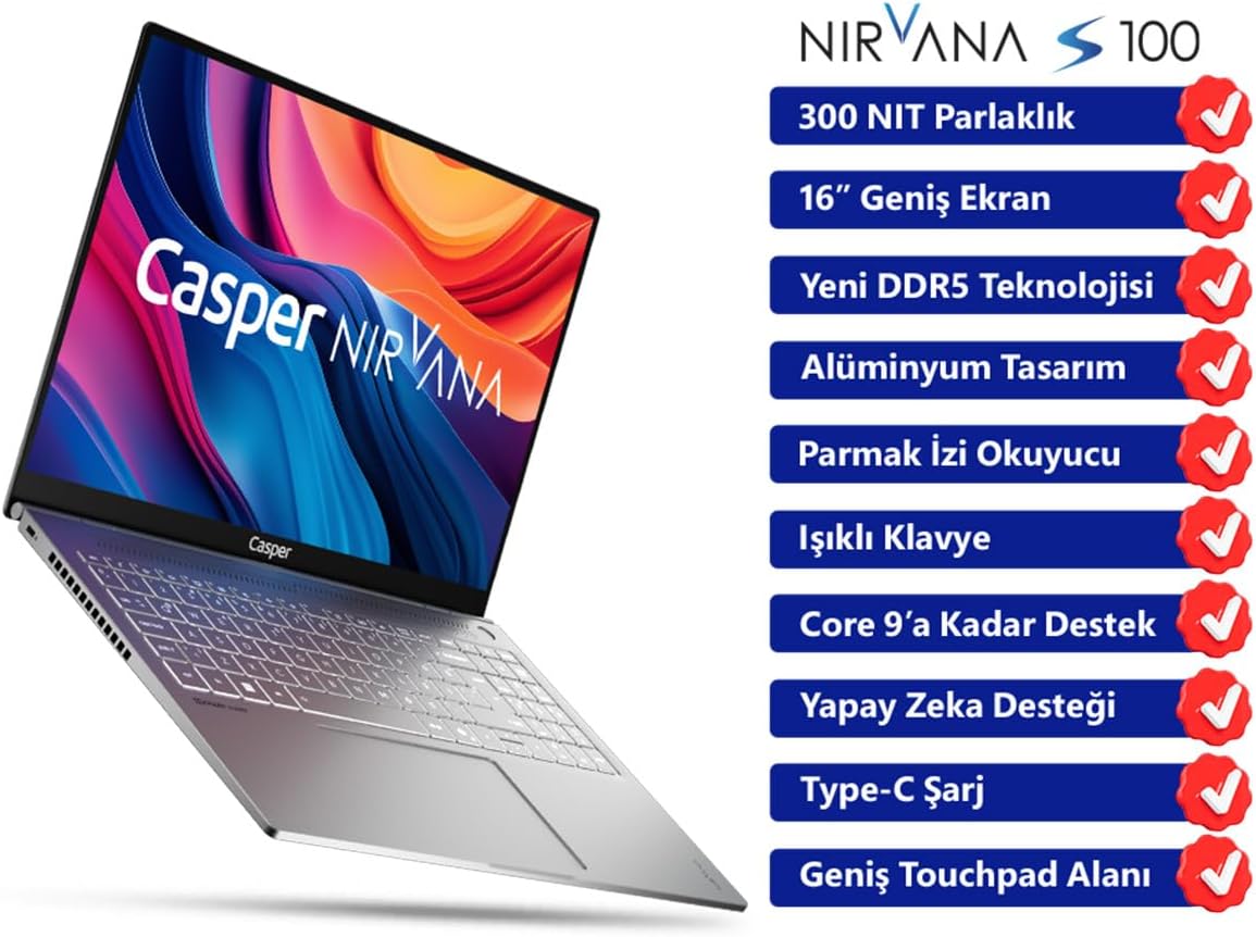 Nirvana S100 16″ 300NIT Core i7-13620H 32GB DDR5 RAM 1TB NVME SSD Freedos Laptop S100.1362-DF00X-G-F