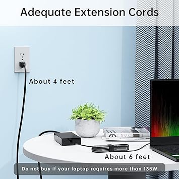 Şarj cihazının maksimum çıkışı 19 volt, 7,1 amper ve 135 watt’tır, bu nedenle 135W’tan büyük modellerde çalışmaz.