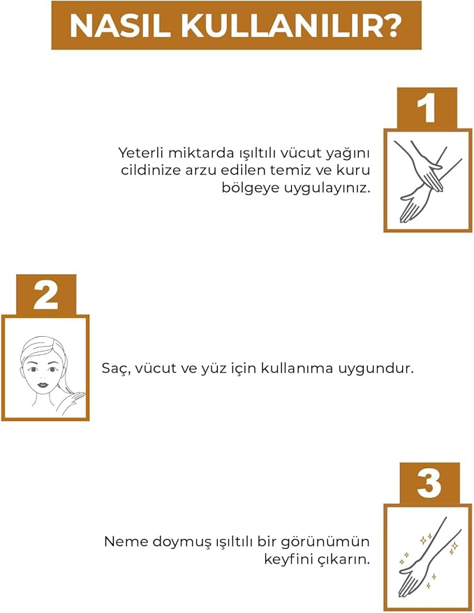 “No:16 Mucizevi Işıltılı Saç Ve Vücut Bakım Yağı 100 Ml – Parıltılı Nemlendirici Bakım” için yorum yapan ilk kişi siz olun