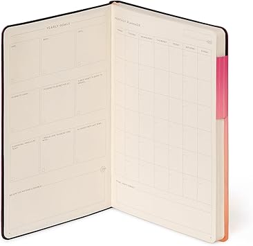 Özellikler: 192 numaralı sayfa. 12 sayfa aylık planlayıcılı. Yıllık kararlar. Adres defteri. Yumuşak poliüretan cilt. Elastik kilit. Kitap ayracı. Kitap ayracı/kalem tutucu için karton. Sonunda cep. Endeks, adres defteri, şifre ve kimlik sayfası, seyahatleri not etmek için kart ve günün havasını işaretlemek için sevimli semboller vardır.