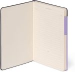– Not Defteri, Çizgili, Medium, 192 Sayfa, Yumuşak PU Cilt, FSC® Sertifikalı Kağıt, Fildişi Renkli Kağıt 90 g/m², Aylık Planlayıcı, Adres Defteri, Yer İşareti, 13 x 21 cm, Renk Lavanta