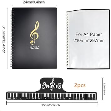 50 cepli nota dosyası: 50 şeffaf cebe sahip nota klasörümüz standart A4 nota kağıtlarını rahatça tutabilecek ve nota koleksiyonunuzu düzenlemek ve saklamak için yeterli alan sağlayacak şekilde tasarlanmıştır. Karmaşık nota yapraklarına veda edin ve en sevdiğiniz kompozisyonlara kolay erişimin tadını çıkarın