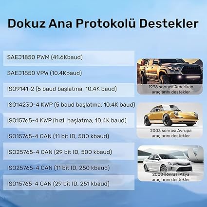 Geniş Uyumluluk: Bu OBD tarayıcı teşhis aracı, 2003’ten itibaren çoğu Avrupa modelini ve 1996’dan itibaren çoğu Amerikan modelini destekler. Bu da onu çok çeşitli araçlara uygun, çok yönlü bir araç haline getirir.