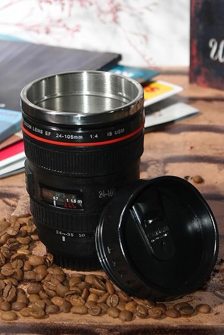 Objektif Kupa Lens Kupa Kahve Ve Çay İçin Termos Kupa Fotoğraf Tutkunları İçin Dekoratif Hediyelik 350 ml (Plastik Kapak)