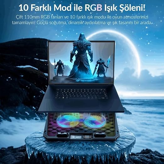 Odin RGB Işıklı Gaming 2200RPM Çift Fan LED Display Laptop Notebook Soğutucu Stand