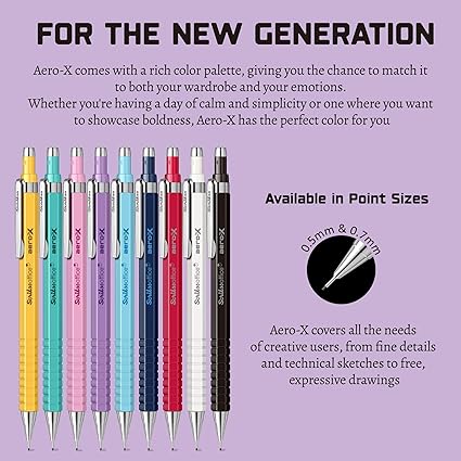 Aero-X 0,7 mm ve 0,5 mm kalınlığında uç alternatifleri ve geniş renk seçenekleri ile tarzınıza ve okul hayatınızda sizlerle