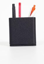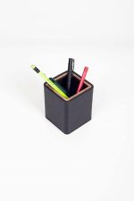 Ahşap Detaylı Siyah Deri Masaüstü Kare Kalemlik, masaüstü setimizin bir parçası olabileceği gibi tekil olarak ta satın alınabilir.