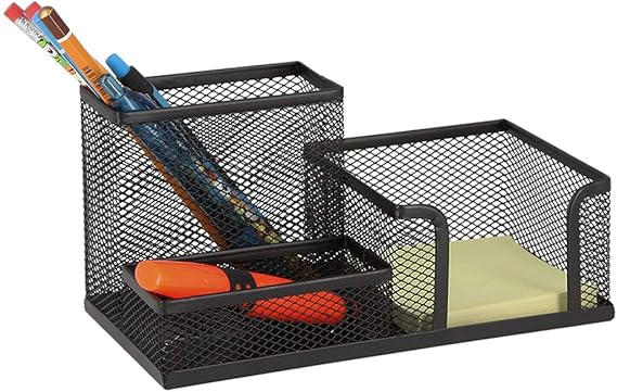 OFFICE Tel metal kalemlik, 3 bölmeli, siyah