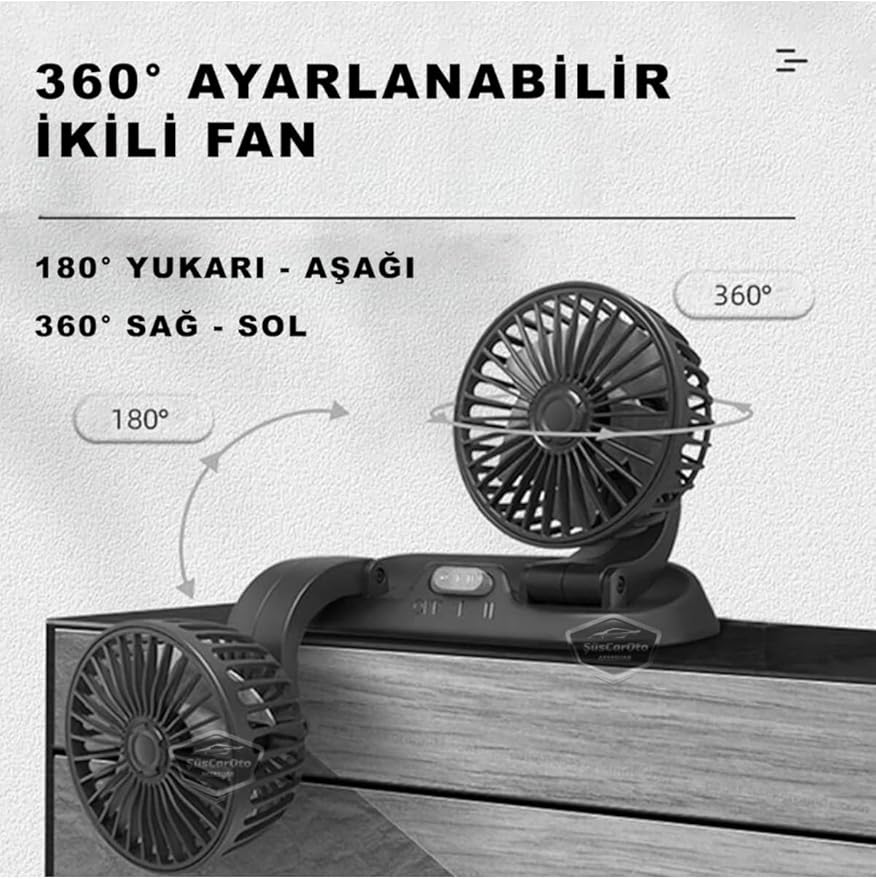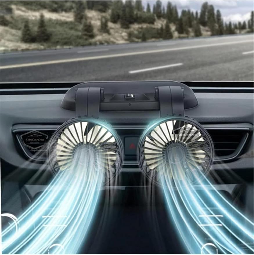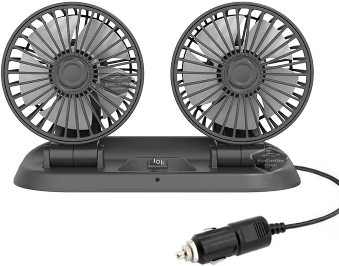 Ofis Araç İçi Torpido Üstü Vantilatör Çift Başlıklı Çakmaklıklı Soğutucu Fan 360° Dönebilen 12V,SUS0620