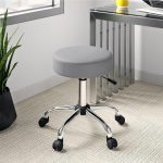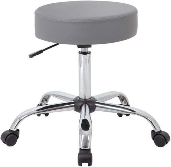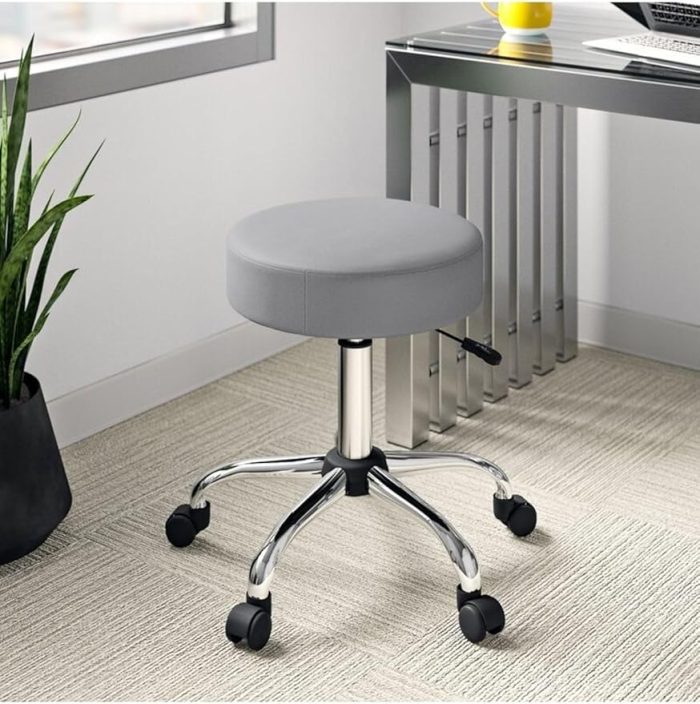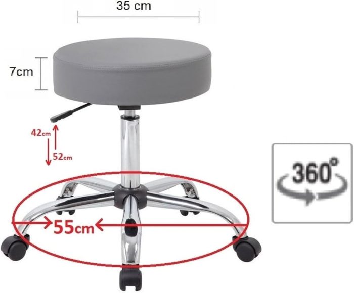 Ofis Kasiyer Taburesi 360 Derece Döner Deri Döşeme Oturak Eczane Laboratuvar Için Metal Ayaklı Gri
