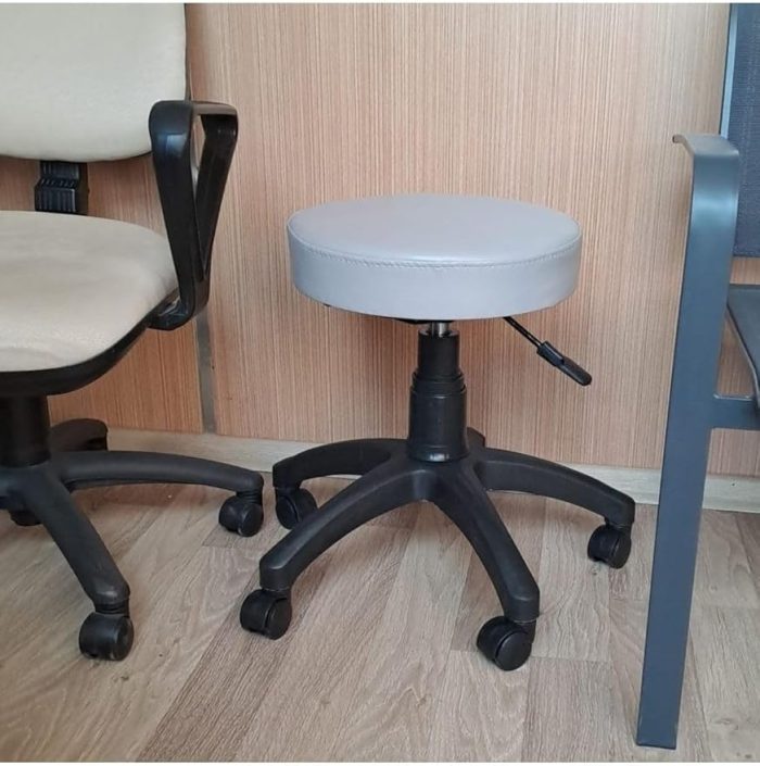 Ofis Kasiyer Taburesi Tekerlekli Deri Döşeme Oturak Eczane Laboratuvar Çalışma Koltuğu Acık Gri