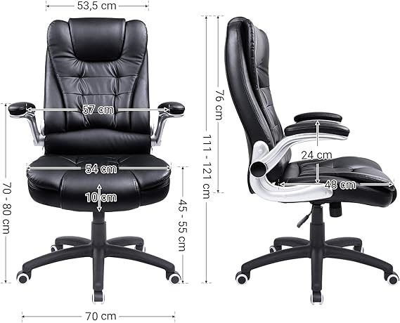 Ergonomik tasarım: Kavisli çizgi duruşa uyum sağlar. Toplam yükseklik yakl. 111 — 121 cm arasında ayarlanabilir, sırtlık yakl. 76 cm yüksekliğindedir, oturma yüksekliği yakl. 45 — 55 cm arasında ayarlanabilir. Ve sandalye sallanan mekanizma ile 360° serbestçe döndürülebilir
