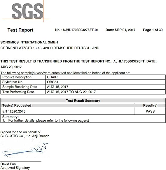Yüksek stabilite ve uzun dayanıklılık – Önemli parçalar (kolçaklar, külbütör mekanizması, tekerlekler, gazlı yay vb.) Olağanüstü tedarikçilerden geliştirildi ve BIFMA’yı geçti. Tabanın çapı yakl. 70 cm, stabilitesi SGS tarafından test edilmiştir, bu da mükemmel stabilite sağlar