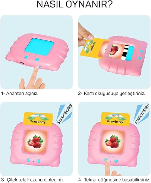 Öğrenim Kartları- Ingilizce Konuşan Sesli Flash Kartlar 112 Kart 224 Görsel PembeUygunluk: 30 adet stokta