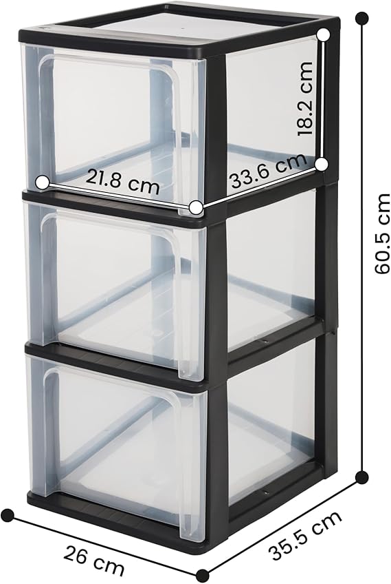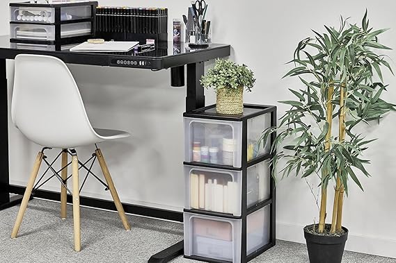 Ohyama, Plastik çekmece kutusu, 3 derin çekmeceli, siyah, Easy-Pull sistemi, A4, A5 ve A6 formatında, çalışma masası düzenleyici, ofis, okul, kırtasiye malzemeleri için, BPA içermez, çekmeceli