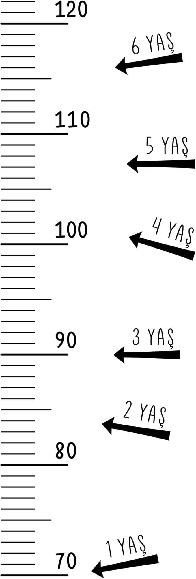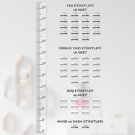 Ürün 70 cm boydan başlar, bunun sebebi yürüme yaşında olan bir çocuğun asgari 70 cm. olmasıdır. “Anne” ve “Baba” gibi diğer aile bireylerinin de ölçüm yapabilmesini sağlayacak uzunluğa sahiptir.