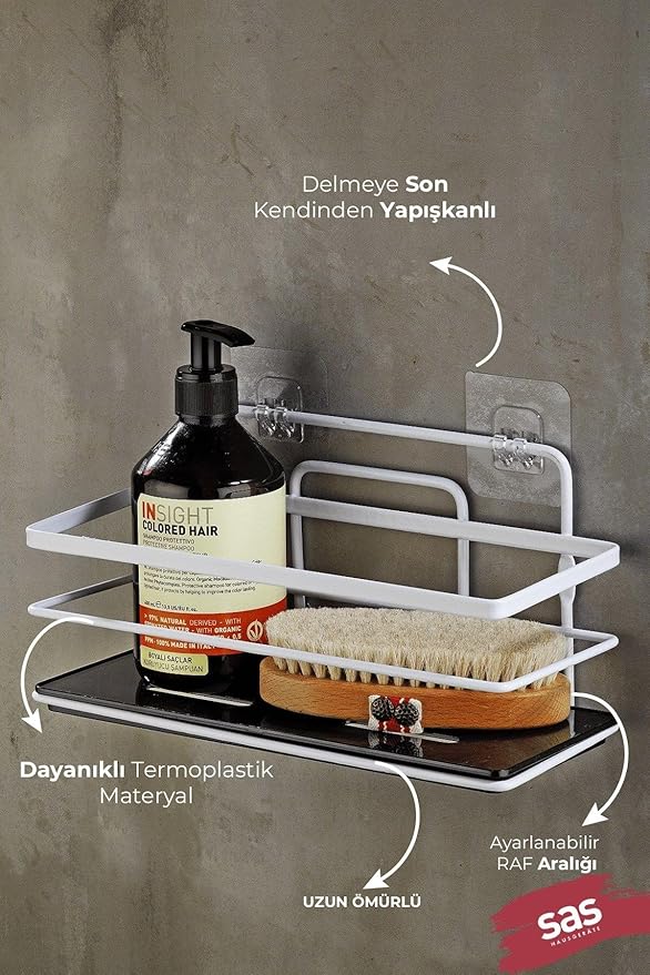 Ömür Boyu Paslanmaz Kristal Ayarlanabilir Raf Banyo Düzenleyici Şampuanlık Beyaz Lş-01 Bs