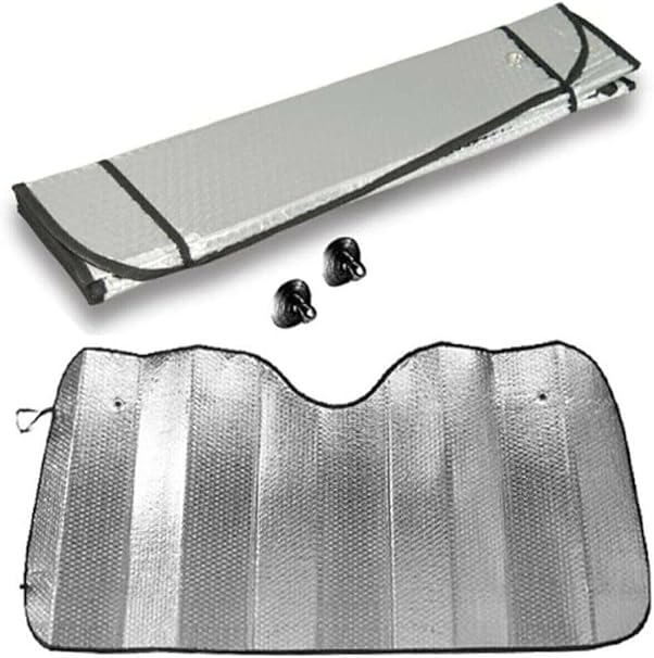 Ön Cam Güneşliği 130×60 cm | Parlak Folyolu Katlanabilir Oto Güneşlik | Alüminyum Yüzeyli Araç Güneşten Koruyucu Perde Branda | Universal Boy Oto Güneşlik
