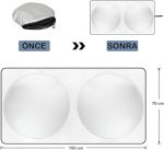 Katlanabilme özelliğiyle aracınızda yer işgal etmeden kolayca taşıyabileceğiniz ürün, 150 cm’lik genişliği ve 70 cm’lik yüksekliğiyle tüm standart otomobil modelleriyle uyumludur. Ön cama yerleştirip her iki taraftaki güneş siperliklerini açarak ön cama sabitlenmektedir.